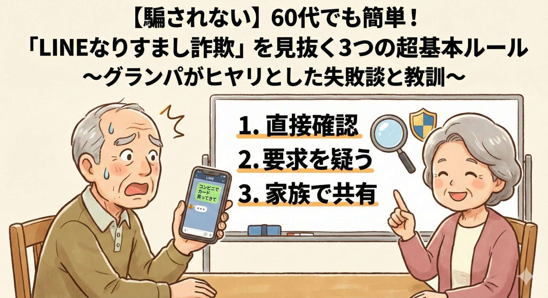 【騙されない!】60代でも簡単!「LINEなりすまし詐欺」を見抜く3つの超基本ルール〜グランパがヒヤリとした失敗談と家族への教え方〜