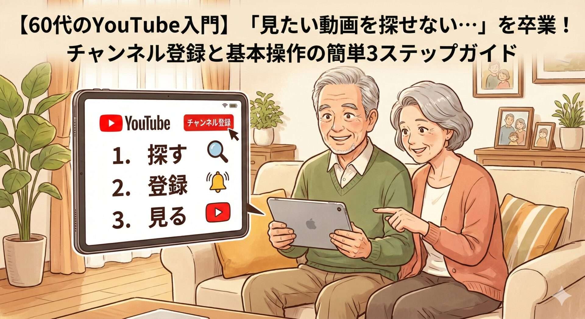 【60代のYouTube入門】「見たい動画を探せない…」を卒業!チャンネル登録と基本操作の簡単3ステップガイド